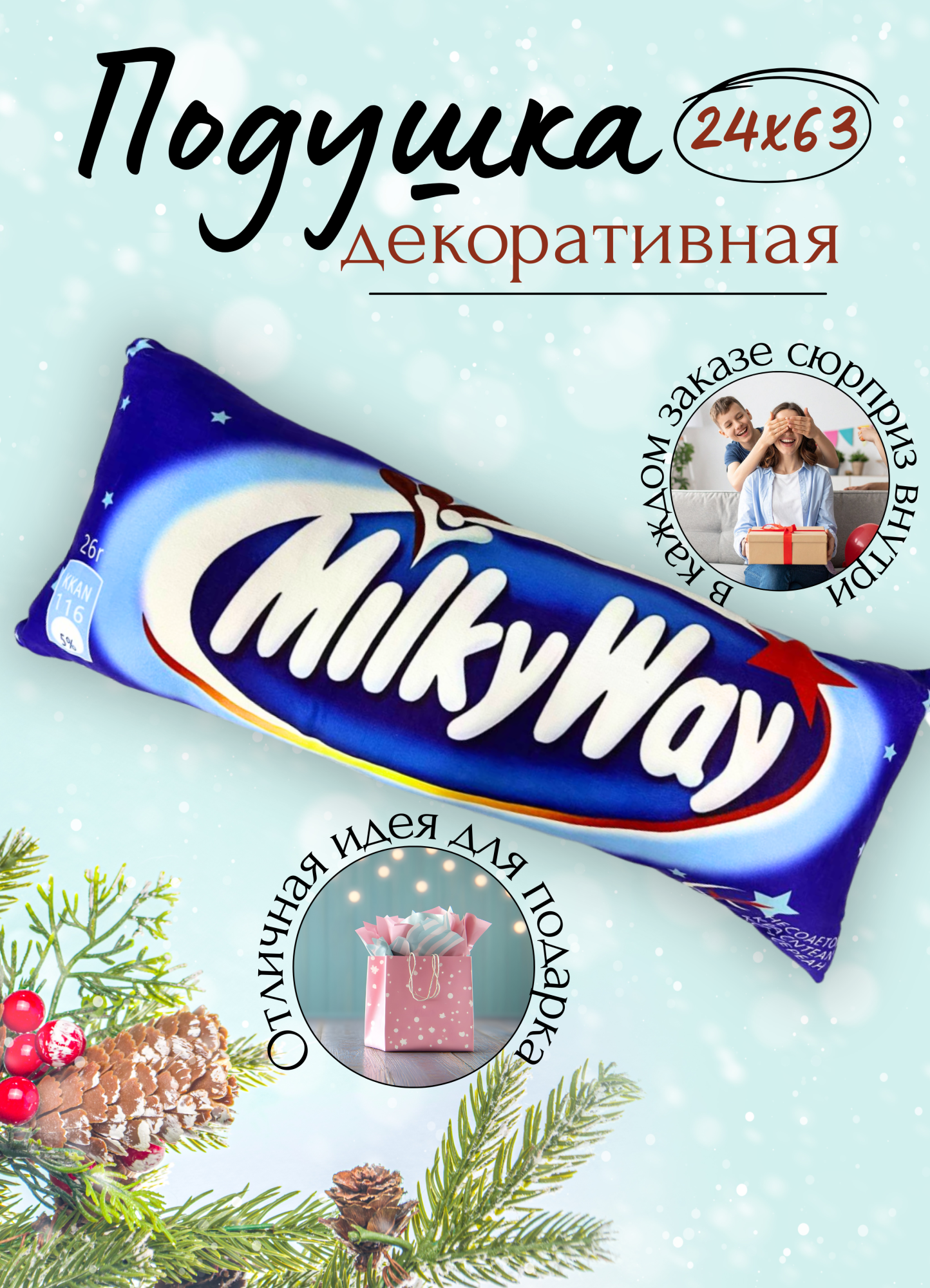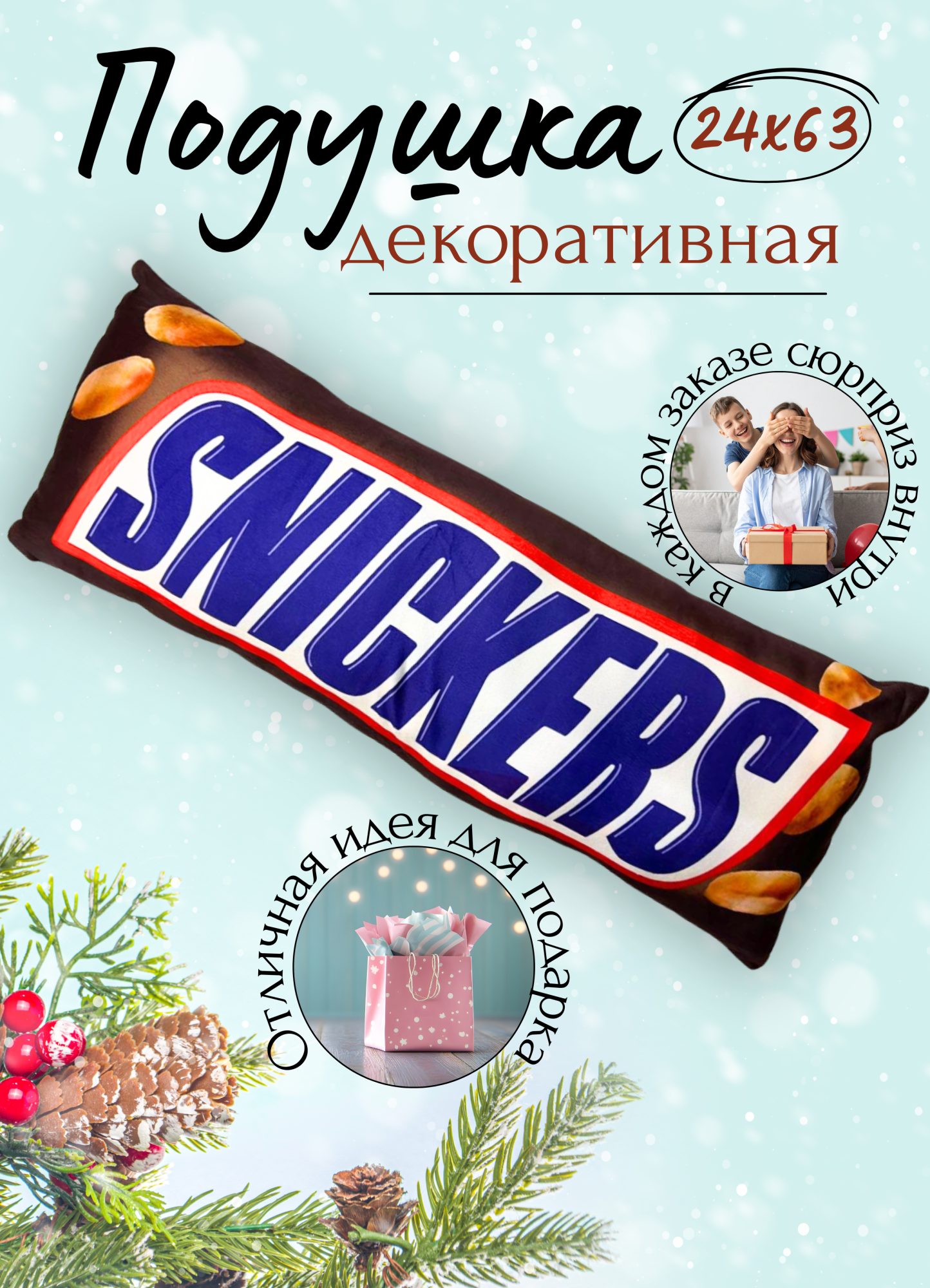 Декоративная подушка Snickers, фигурная подушка в виде шоколадки, оригинальный подарок для интерьера