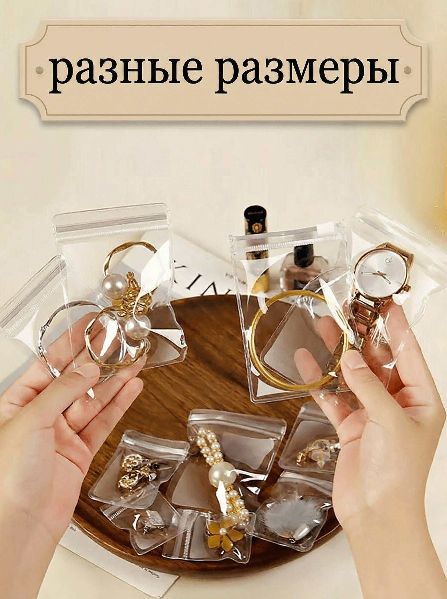 В наличии разные размеры: от 4×6 см до 18×18 см — под украшения и фурнитуру, бисер и пуговицы, пробники и образцы, комплектующие и мелкие товары.
